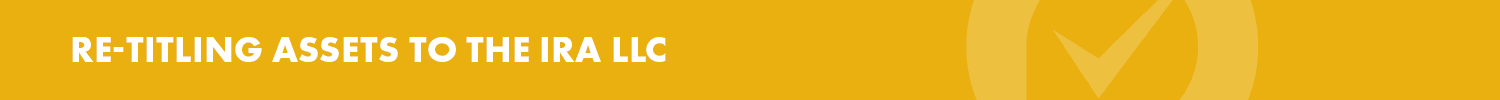 If you set-up your IRA LLC with a pre-existing Self-Directed IRA account, the investment assets need to be re-titled to the IRA LLC by completing the IRA LLC Re-Titling Form. Depending on the investment type, you will need to ensure that any interest/dividends, capital gains, principal, etc. are made out to the IRA LLC.