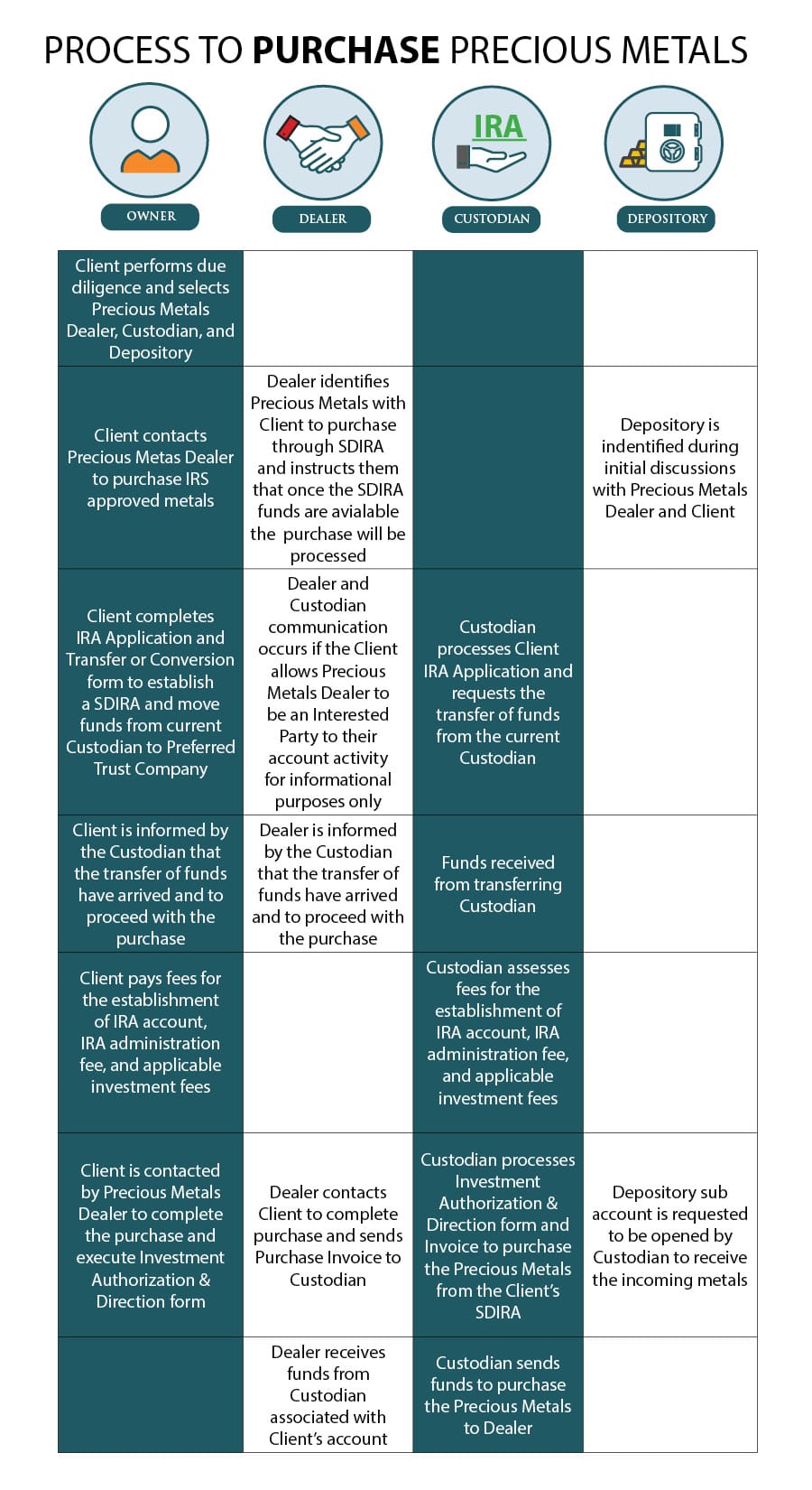 Per the IRS, precious metals invested using your IRA must be held in the physical possession of a bank or an IRS-approved nonbank trustee. You may not personally store the precious metals that are owned by your IRA. This rule also applies to indirect ownership through an IRA owned LLC. Specific factors to consider when selecting a depository include location, security, licensing, insurance, storage fees and types of storage offered; segregated vs. non-segregated. It is important to understand that the custodian of your IRA does not physically store your precious metals. They are a separate entity.